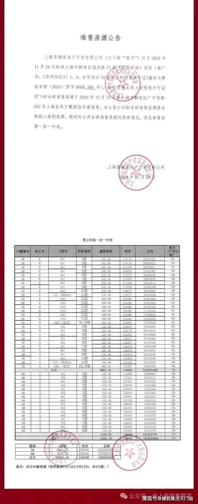 华发仁恒苏河世纪售楼处电话:400-1789-318(预约电话)【华发 仁恒·苏河世纪】此次项目推3#、6#两栋住宅,建面约102-245㎡3-4房。共计44套房源,均价13.9万/m²。另有6套大平层和2套复式。