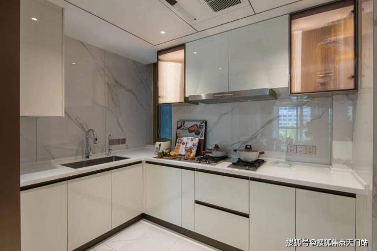 厨房电器配备5件套,包括抽油烟机、燃气灶、洗碗机、蒸箱、烤箱,镶嵌品牌橱柜,采用全球著名品牌水槽、厨房台面,厨房内的中央空调连带炎热夏季的烹饪难题也一并解决,这样的人性化设计,又进一步提升了生活的质量。