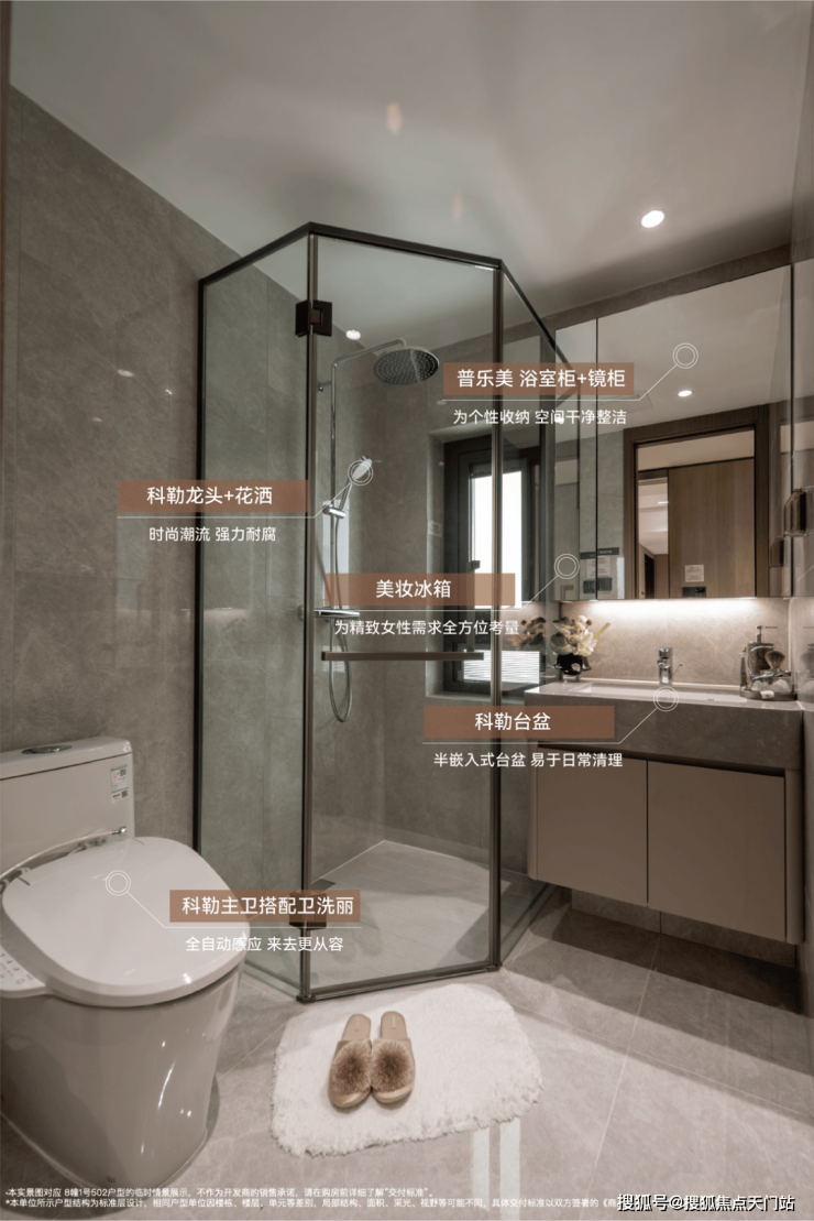 精奢品质—美妆冰箱(主卫)、除臭精灵、主卫卫洗丽、净水器、360°抽拉龙头(厨房)等,予日常人性化关照;
