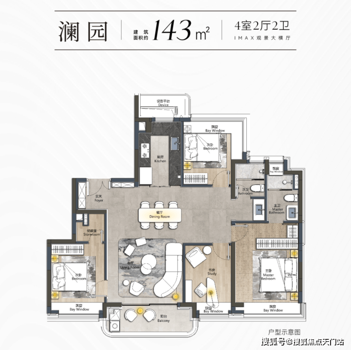 另外还有143平4房2厅2卫,采用飞机户型设计,四开间朝南,南向面宽约13.5米,估计会非常受改善客户欢迎,总价约1600万就能买到好位置!