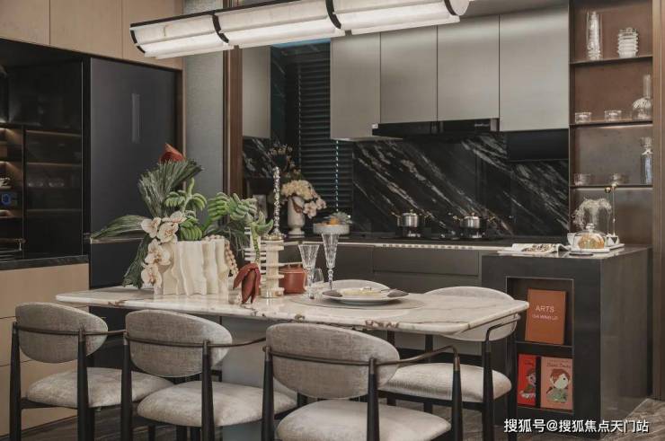 油烟机、燃气灶、烤箱和15件套洗碗机均为博世(或同等品牌);冰箱西门子(或同等品牌);水槽和龙头都是铂浪高(或同等品牌),还有康丽根净水器(或同等品牌)。餐边柜也是交付标准,一般都是120㎡以上的户型才会配备!可见其诚意!