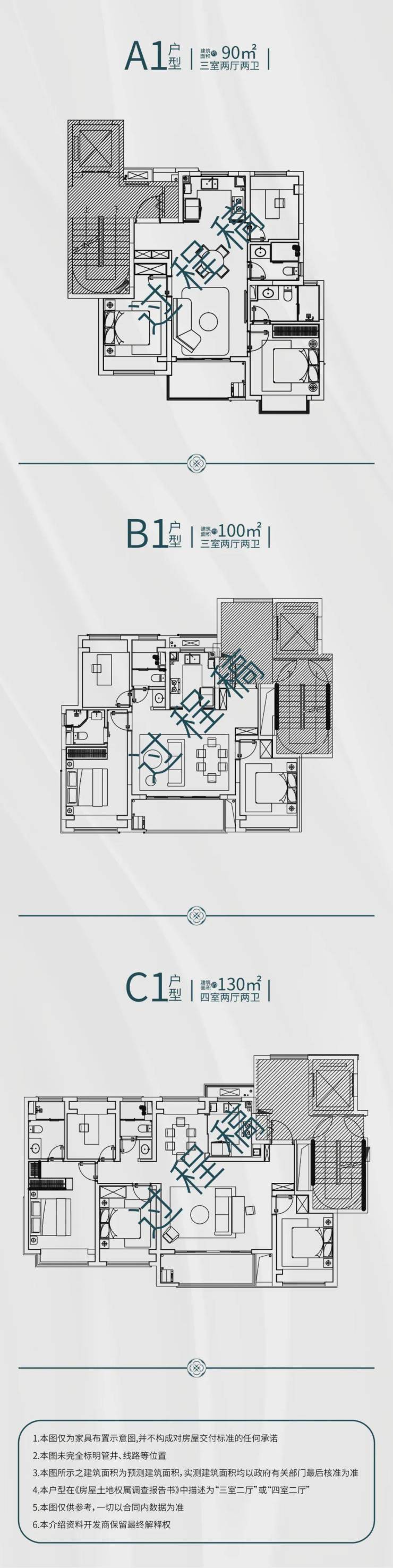 项目目前在售建面约90-136㎡3-4房,最新户型图如下: