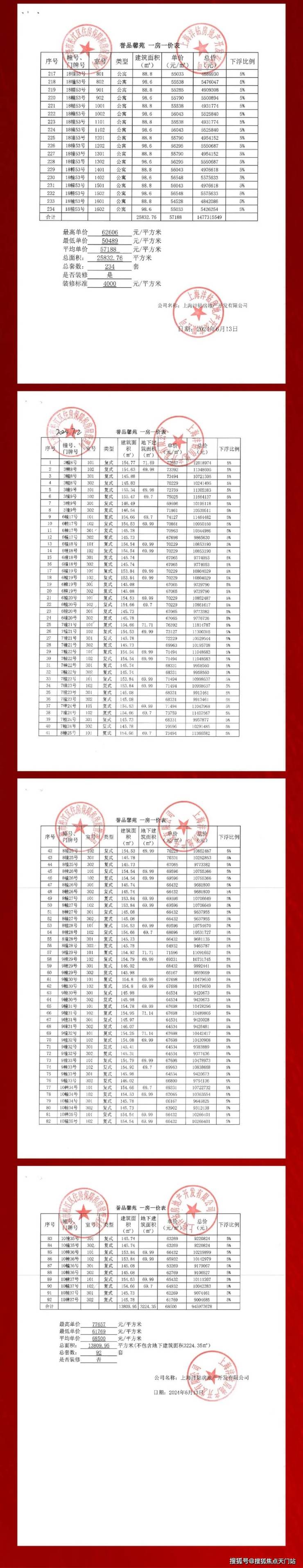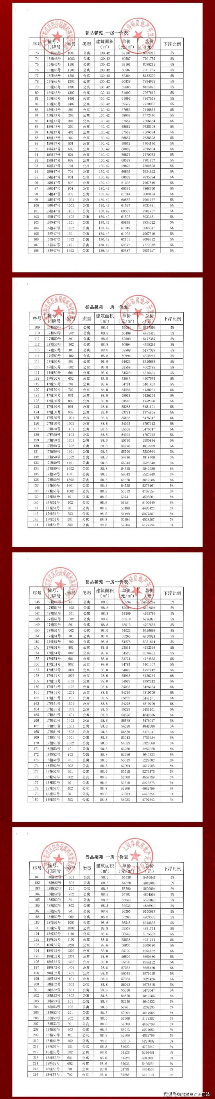 一房一价表如下:
