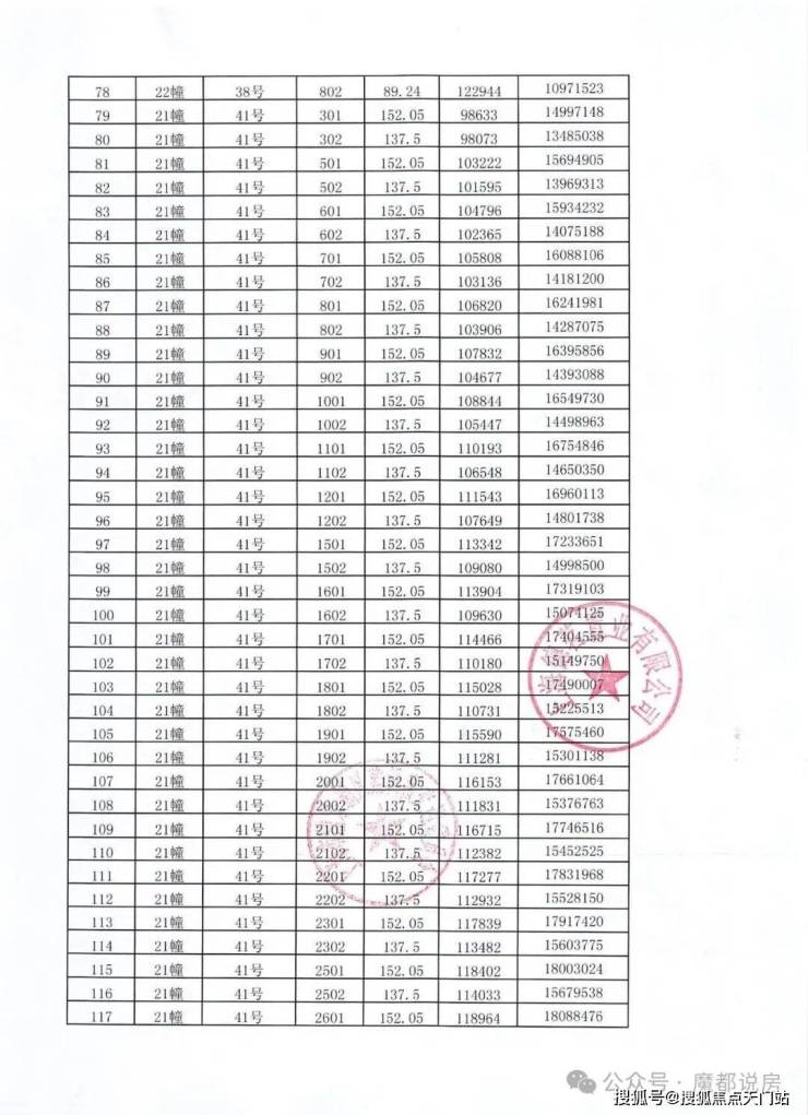 一房一价表: