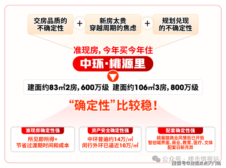 市场中能同时破解这三大难题的项目已属稀缺,而中环·桃源里,是当下”确定性“比较靠谱的楼盘。