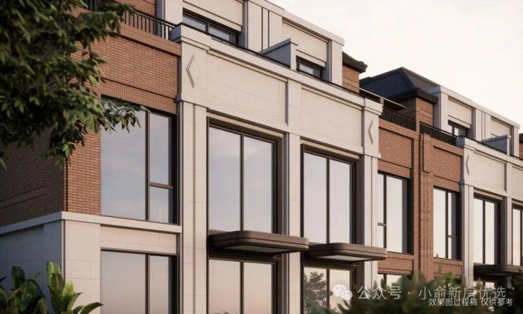 立面沿袭了嘉佩乐酒店的红砖元素,腰线运用深古铜色铝板,提取山墙、几何装饰等里弄建筑符号,以独具海派文化底蕴的红砖造艺,延续墅居经典三段式立面结构。