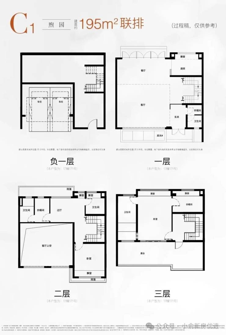 建面约195㎡的C1户型,尺度更加惊人,墅居体验堪称“庄园式”!