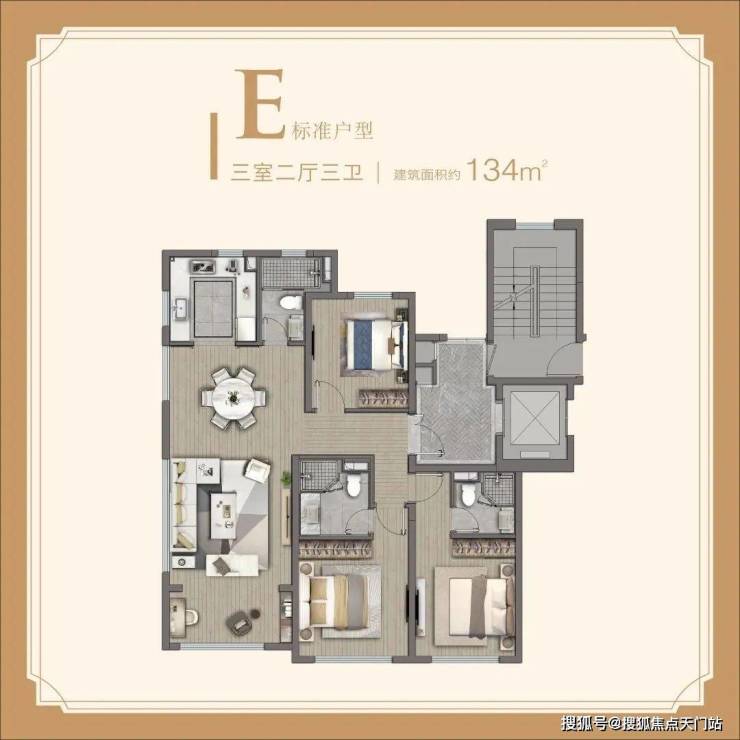 其次,所有户型室内层高都高达约3.15米,堪称“不做平方做立方”,多出的高度,即使装上空调、吊灯、地暖依旧非常舒适。