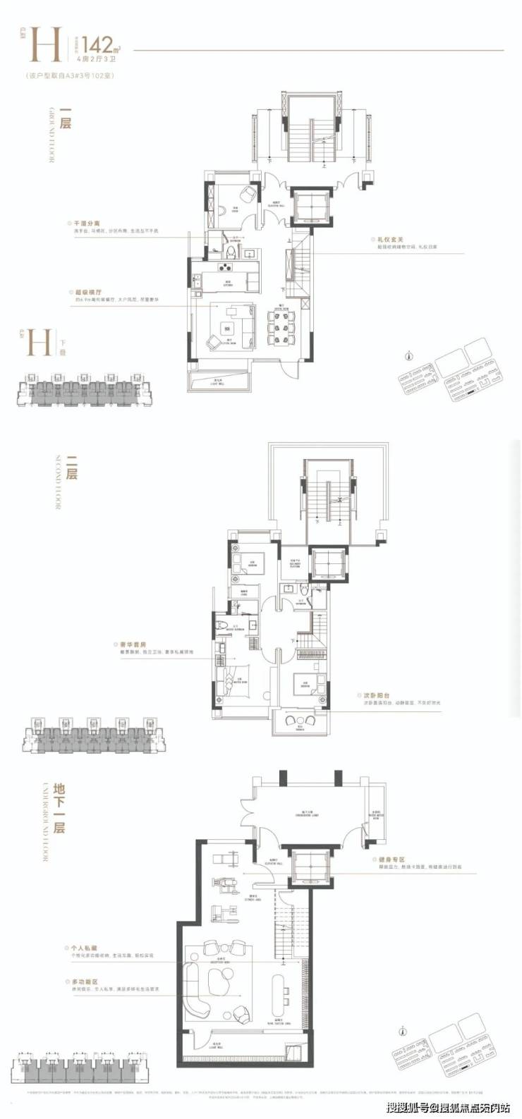 ◐下叠亮点:南北 双入户,超大面宽采光井、多功能地下室。
