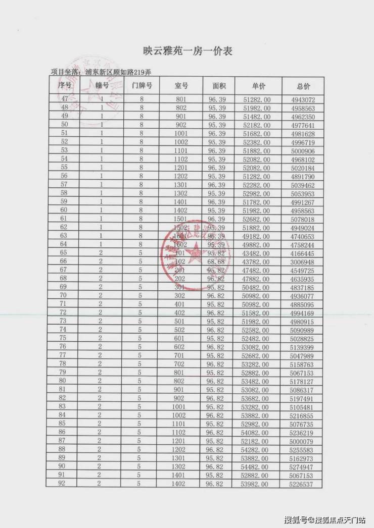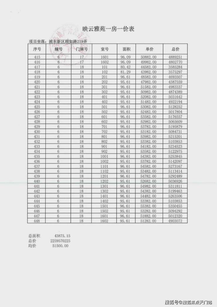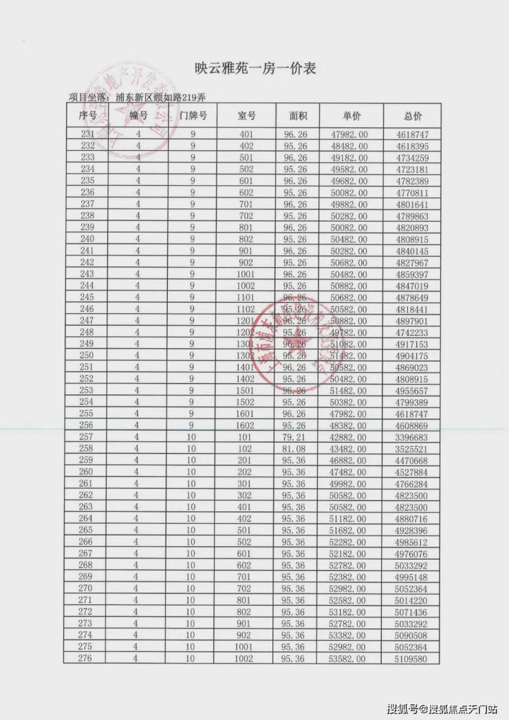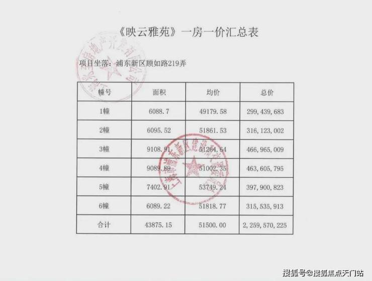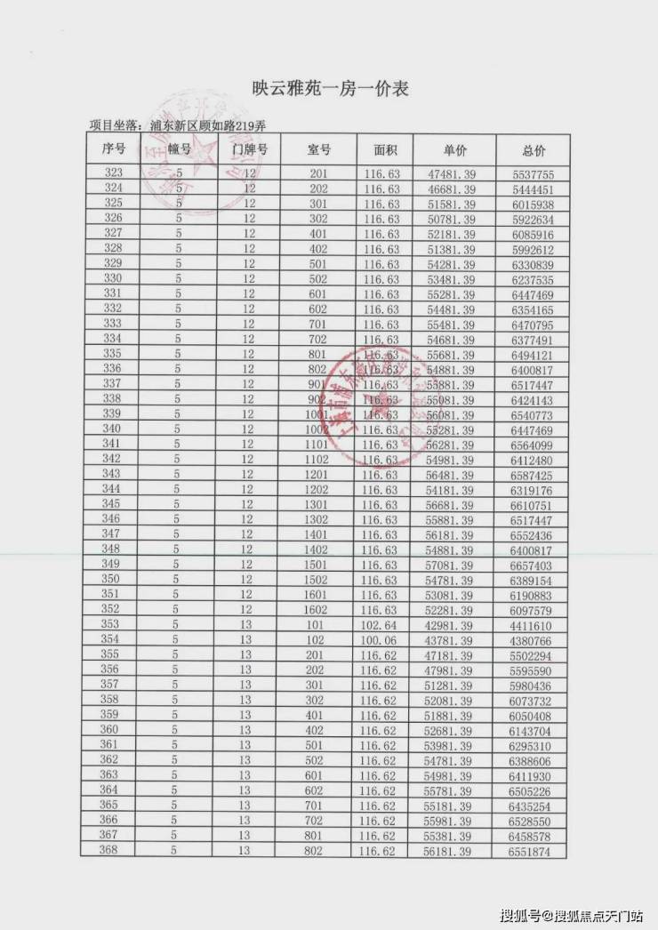 项目一房一价表▼