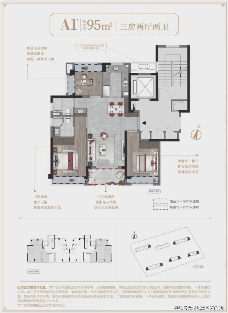 建面约95㎡3房2厅2卫▼
