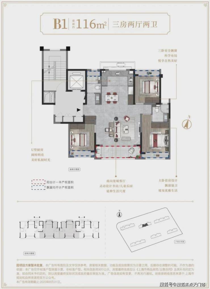 建面约116㎡3房2厅2卫▼