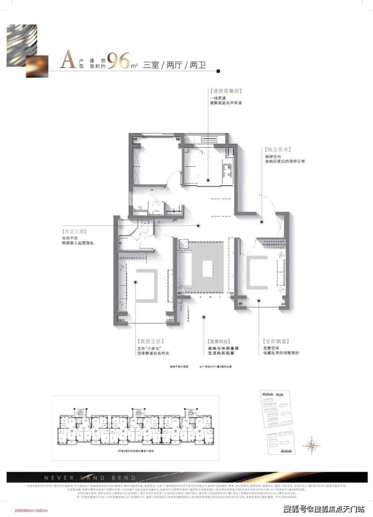 建面约96㎡精质三房,一步到位舒适人居:该户型方正格局、南北通透无连廊,既容纳二人世界的浪漫,也可将三口之家的幸福一并珍藏。