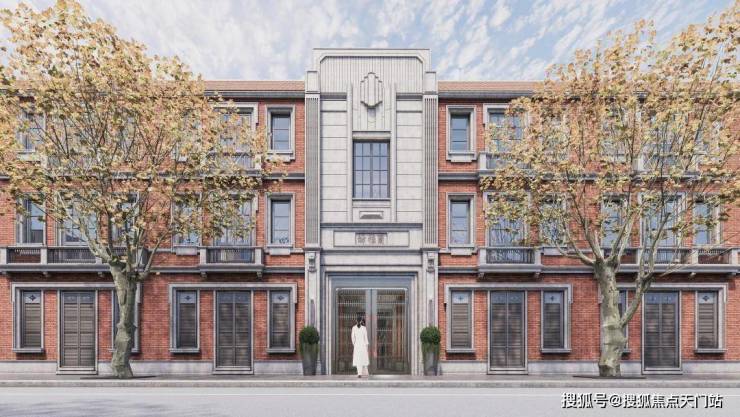 一幕为海派门仪,也是项目的主入口,约10.7米阔绰门庭尺度的海派里弄门楼界面,极致的对称仪式布局,延续建筑红砖肌理,甄选天然红洞石,还原那一抹隽永而厚重的经典色彩,既有大地般的沉稳,又透出低调的奢华感。