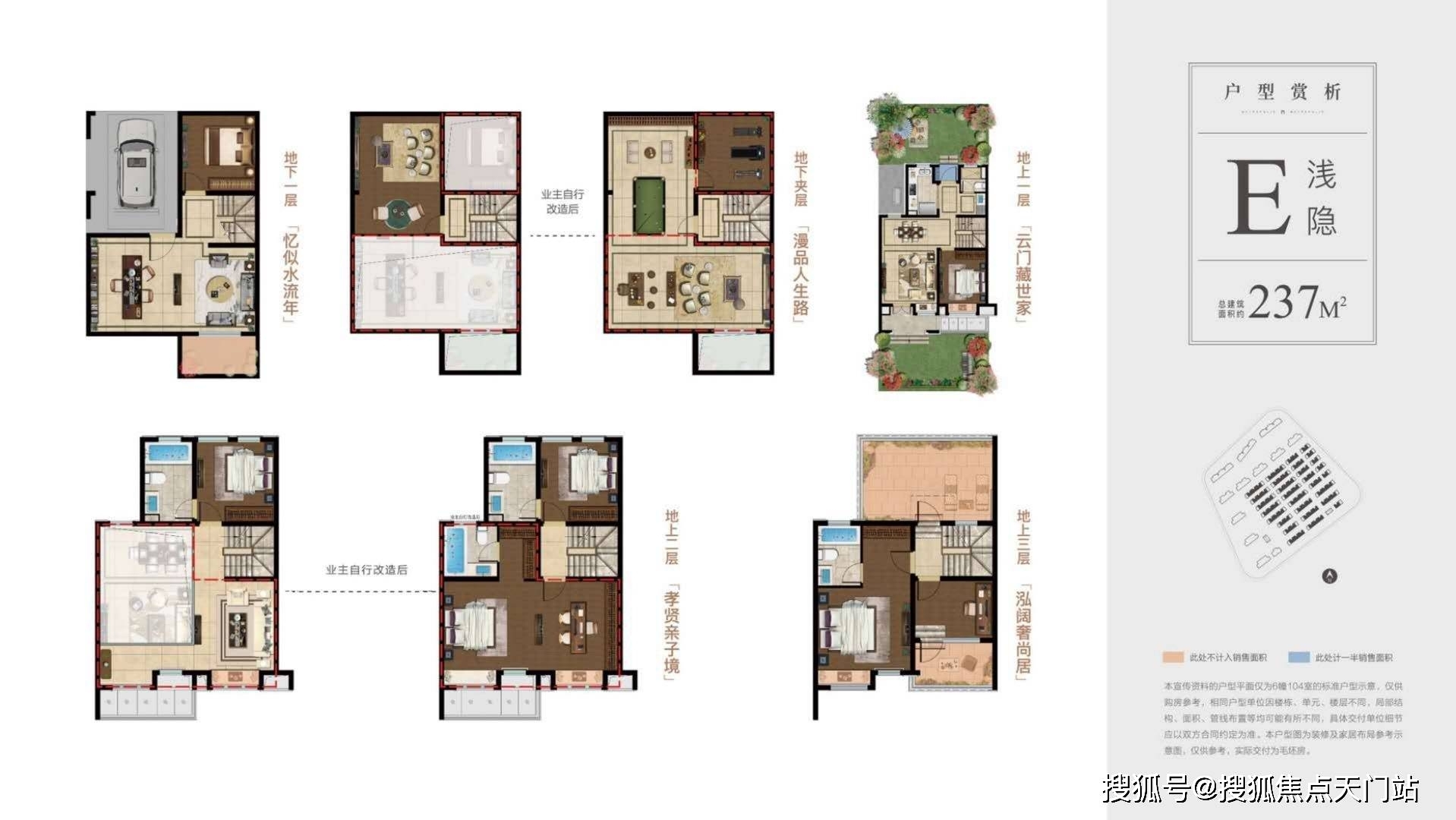 户型1:237平/4套房设计套房设计,地下室挑高5.45米,尊享私家南北双入户,双花园,双露台,层高3