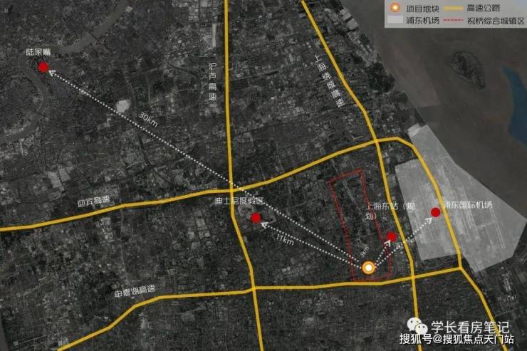 「森兰海天名筑」基地位于祝桥城镇区,虽然距离上海市区较远,但紧邻浦东国际机场与上海东站新址,距迪士尼度假区直线距离仅有10km左右。在城市规划层面属于祝桥生态居住区核心位置,宏观上四周有临空产业片区,上海东站,生态保育片区,度假休闲片区,规划前景不可限量。