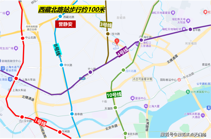 此外,距离人民广场、南京路、外滩、苏河湾、北外滩这些耳熟能详的繁华地标,基本都在直线距离3公里左右。