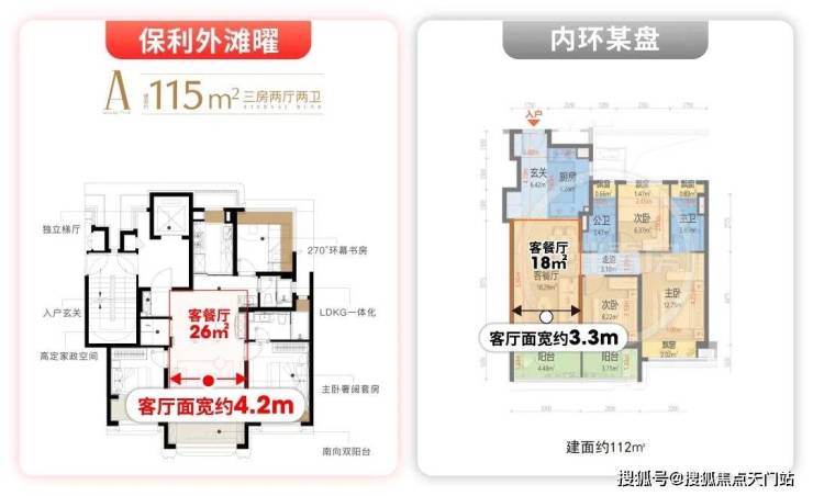 我们以建面约115㎡全能三房、建面约139㎡天幕四房两大主力户型为核心,对标内环同面积段产品逐一拆解,你会清晰看到: 它不仅做到了「同面积段体验碾压」,更实现了「小户型平权顶豪配置」,在内环新房市场堪称独一份的存在。