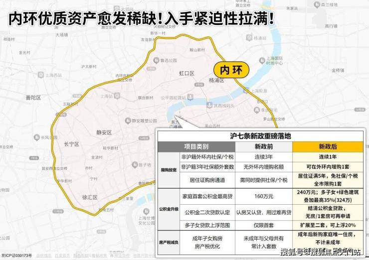 ①上海内环总面积仅占全市陆域面积的约1.8%,是上海开埠百年的城市核心原点,开发早已饱和,没有任何扩容可能;