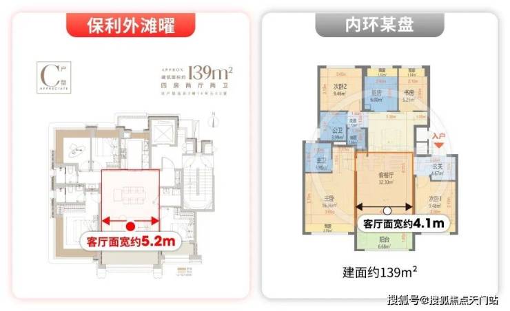 保利外滩曜的建面约139㎡户型,是项目仅2#、3#西边套才有的限量产品。