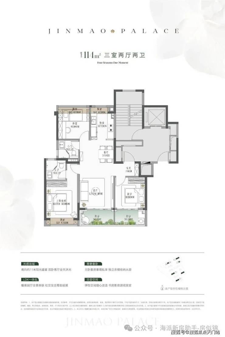 ● 建面约114㎡3房:低总价上车首选,闭眼可冲。