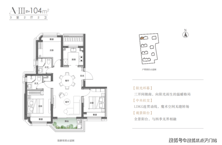 这套建面约104㎡的三房两厅两卫,整体的尺度与功能性完全不输于市面约120㎡左右的户型,且总价段更友好!按照11.8万/㎡均价来算,总价相当于劲省下约200万!