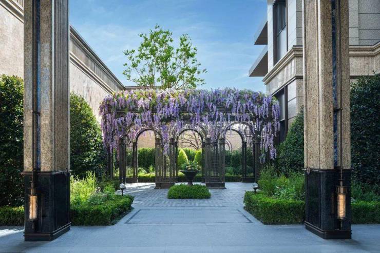 而在社区园林设计上,项目采用了 “两轴、十园”景观主题,灵感取自上海10处名园,比如马勒别墅的时光园、兰心大戏院的兰心坊、和平饭店“拉利克廊”的琉光园、百乐厅的入户大厅,充满诗情画意的幸福里花园、源自上海爱神花园的爱神园等等。