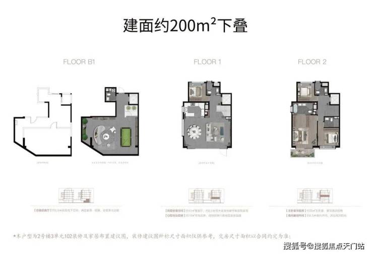 比如(以建面约200㎡下叠为例):