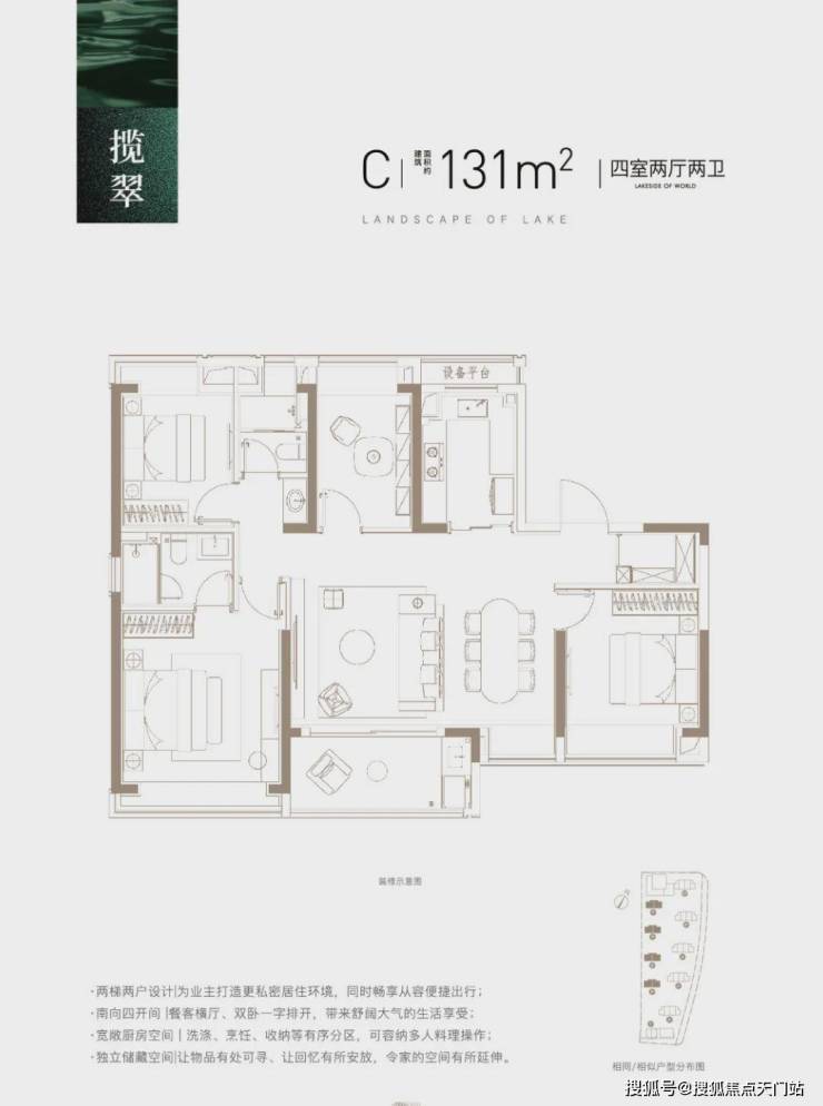 该户型 总价4字头,性价比非常高,能满足业主从二人世界到三口之家,再到二胎家庭的全生命周期需求。