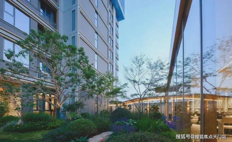 第一进:星级酒店的入户门头搭配入户水景,让入户更具仪式感、同时通过院内布景的遮挡,让小区内部景观增添一抹神秘感;