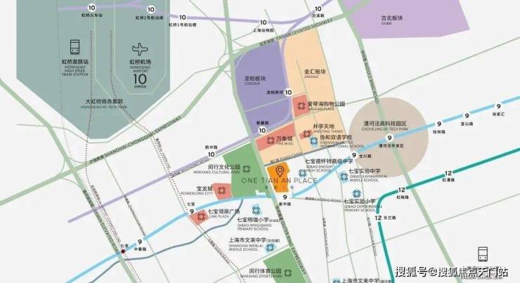 「天安1号」毗邻金汇、龙柏,古北三大国际住区板块,辐射漕河泾高新开发区和大虹桥商务区的高端商务和产业客群。