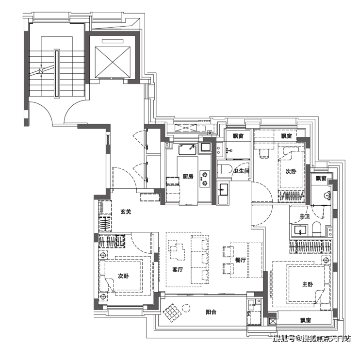 首先, 同样一梯一户的体验,就已经比目前市场上绝大多数刚需三房产品高上一截。
