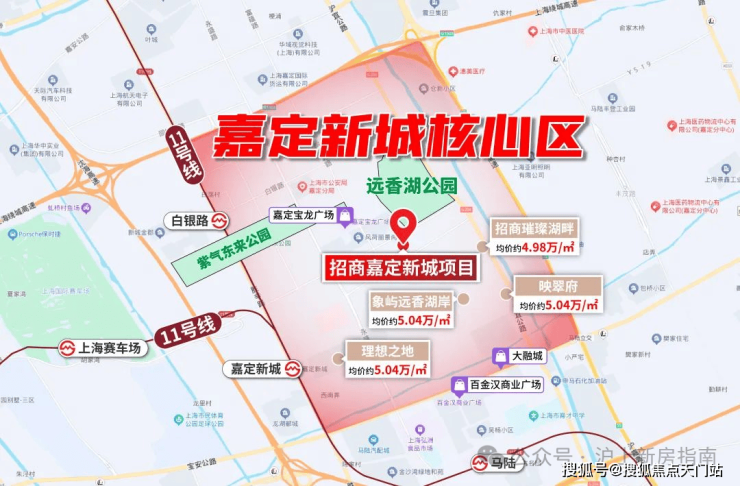 项目距离11号线嘉定新城站直线约1.7公里,算不上地铁房,但有望通过宝嘉线+嘉定快线(研究)改变这一现状,下图为可能规划中的站点