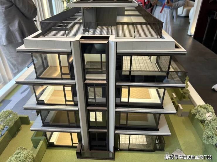 从模型来看:270°超大窗墙比+现代摩登外立面,独享电梯厅+私人电梯,精装交付。