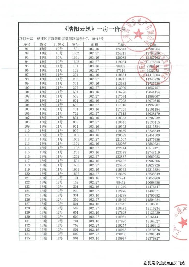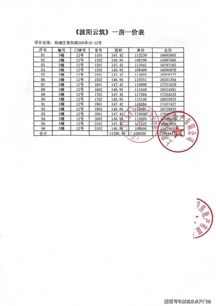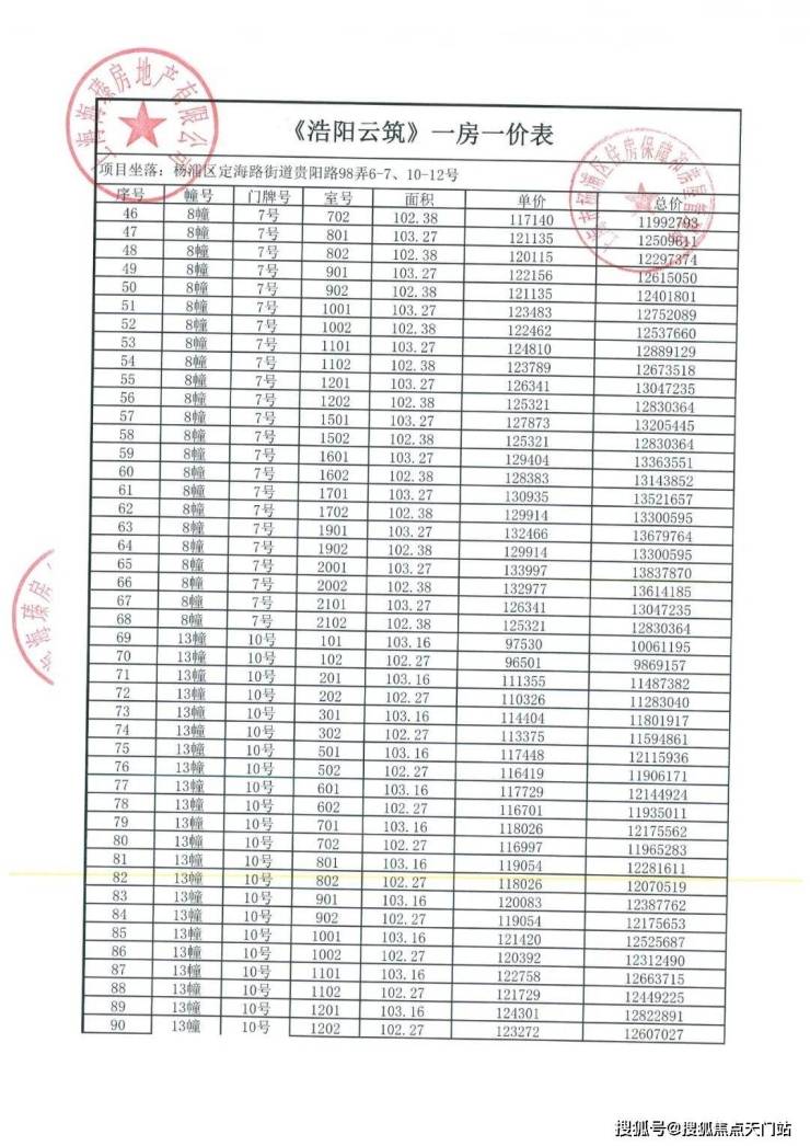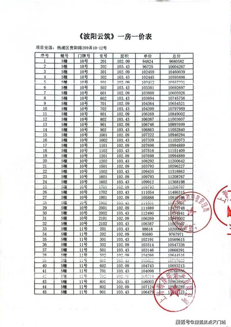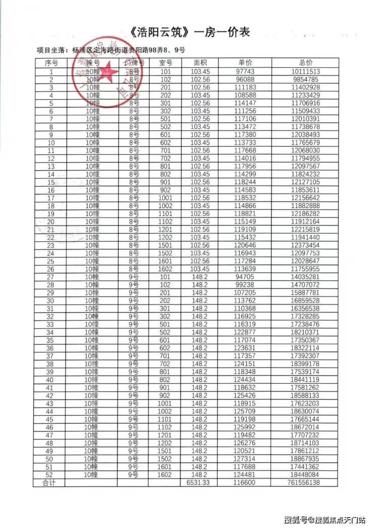 前期一房一价表: