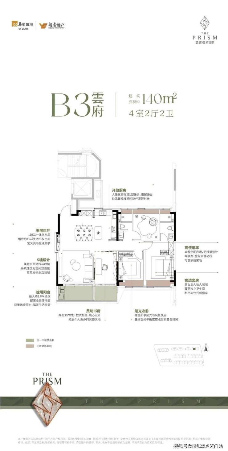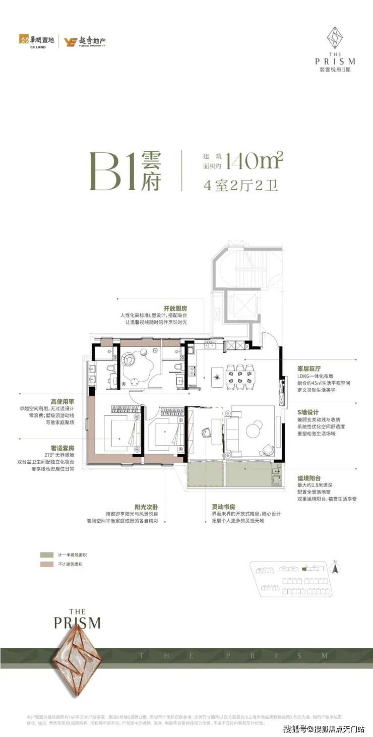 同时,南向客厅+餐厅的一个巨大开间,搭配大面的落地窗,让业主尽享完美的采光及视野。