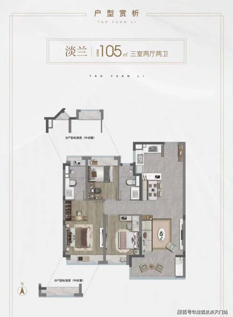 建面约106㎡3房,总价800万级;
