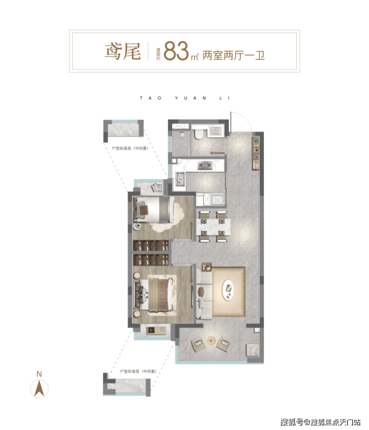 在售建面约83㎡2房,总价600万级;