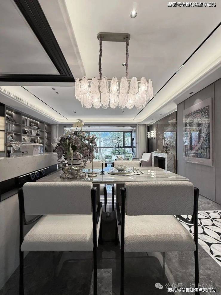 进门之后,恍若走进一幅立体绽放的画卷。地面采用了石材拼花,纹理如行云流水般舒展,在光影交错间勾勒出 低调的奢华。