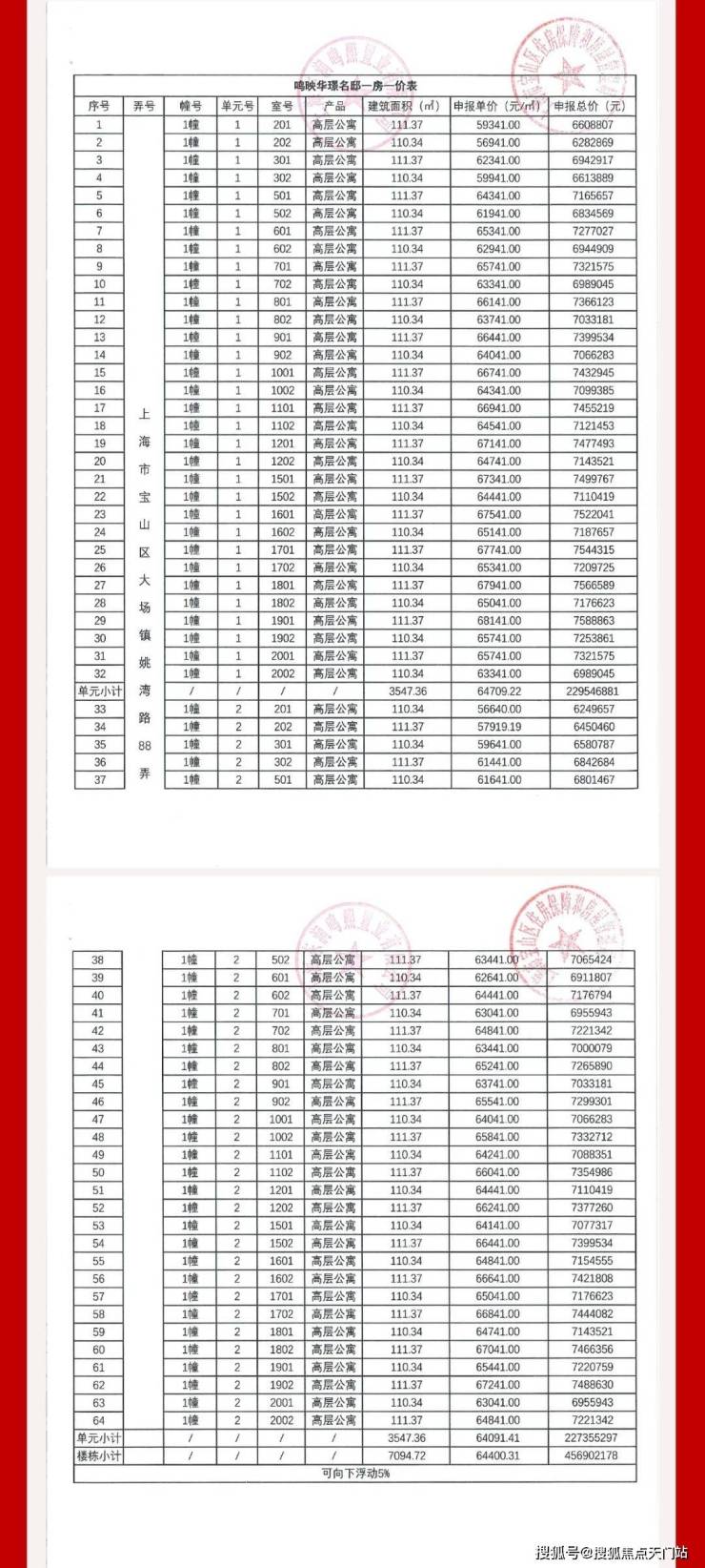 上期一房一价表: