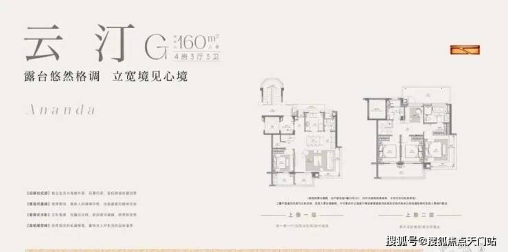 建面约160㎡上叠预计使用率最高约145%、约8.5m横厅双阳台、南北通透主卧套房。