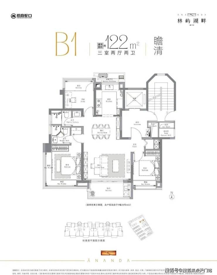 该户型分布在6号楼、9号楼、11号楼以及13号楼,其中9号楼位置最佳,南向楼间距约46米,下沉式庭院景观一览无余,下楼即达会所空间!