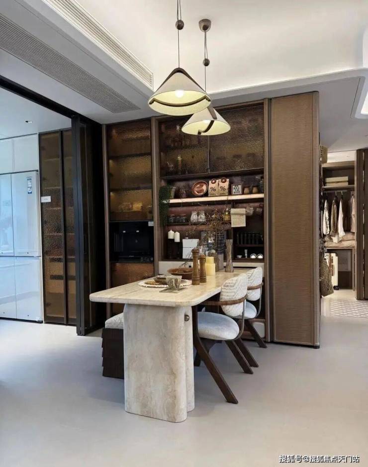 入户设置800库空间,它和传统玄关柜的区别在于:从“平面收纳”升级为“立体仓库”,储物功能更强大!约5米面宽横厅,多出来一个灵动空间,可根据个人需求定制为开放式书房、茶室等;岩板+金属饰面电视背景墙同样为交付标准;LDK一体化,餐厅区域可轻松放下6人位餐桌,并预留餐边柜位置;U型厨房,配置方太四件套(油烟机、灶具、洗碗机、蒸烤一体机)、科勒水槽及龙头等,基本所见即所得;同时厨房也附赠飘窗,将飘窗台面与橱柜一体化设计,做为了水槽区域,极大的提高了厨房空间的实用面积!边套户型主卧为270°转角飘窗,并预留两个衣柜空间;北卧为封闭阳台,实际交付时阳台会改造到位,地暖通铺,地板墙纸通铺,吊顶做好,可参考样间效果。