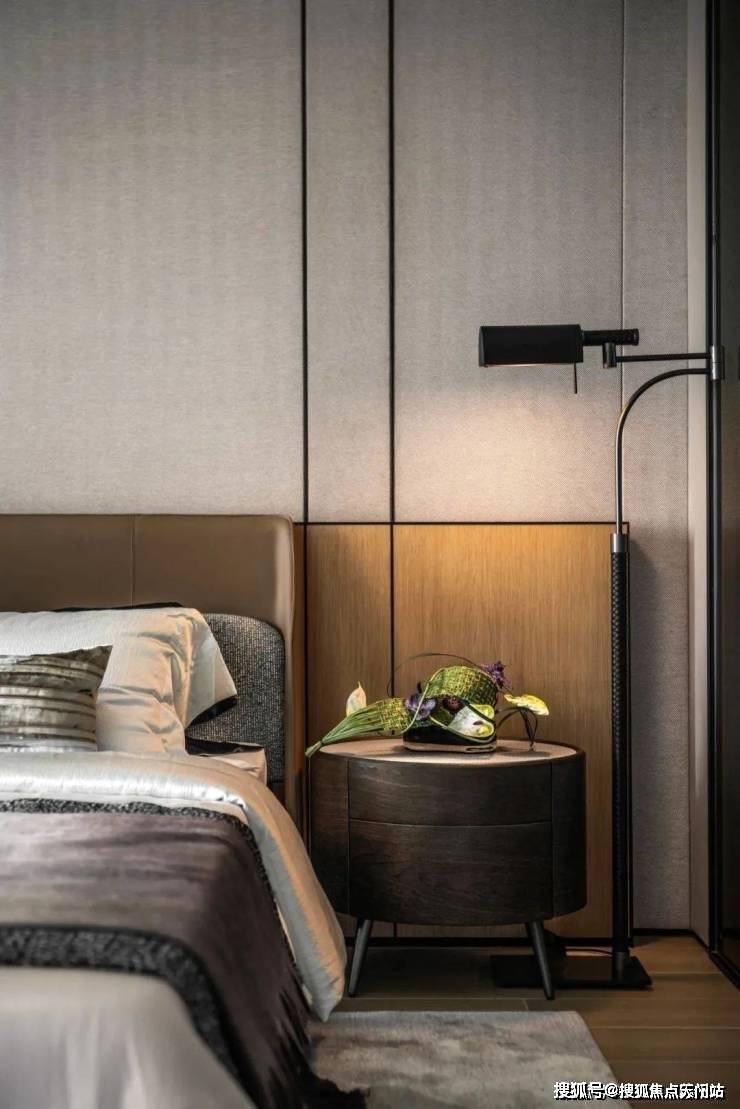 次卧的色调相对更为深邃,设计师通过不同的色彩选择,为静谧的氛围赋予了别样的诠释。有的空间明亮温暖,有的则内敛深沉,各种高品质材料相互搭配,编织出柔软而舒适的触感,再辅以恰到好处的艺术装饰,将空间的高级感提升到新的高度。
