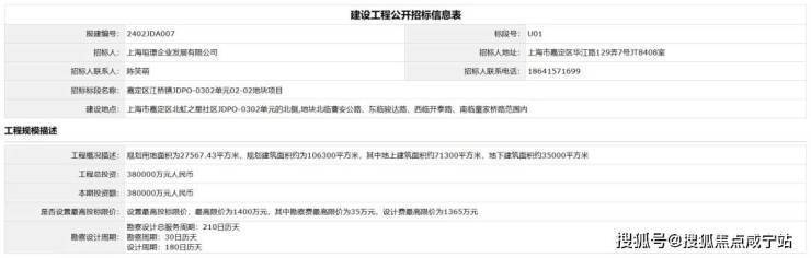 公示发布后不久,上海市建设工程交易服务中心随即发布了该地块的建设工程公开招标信息。