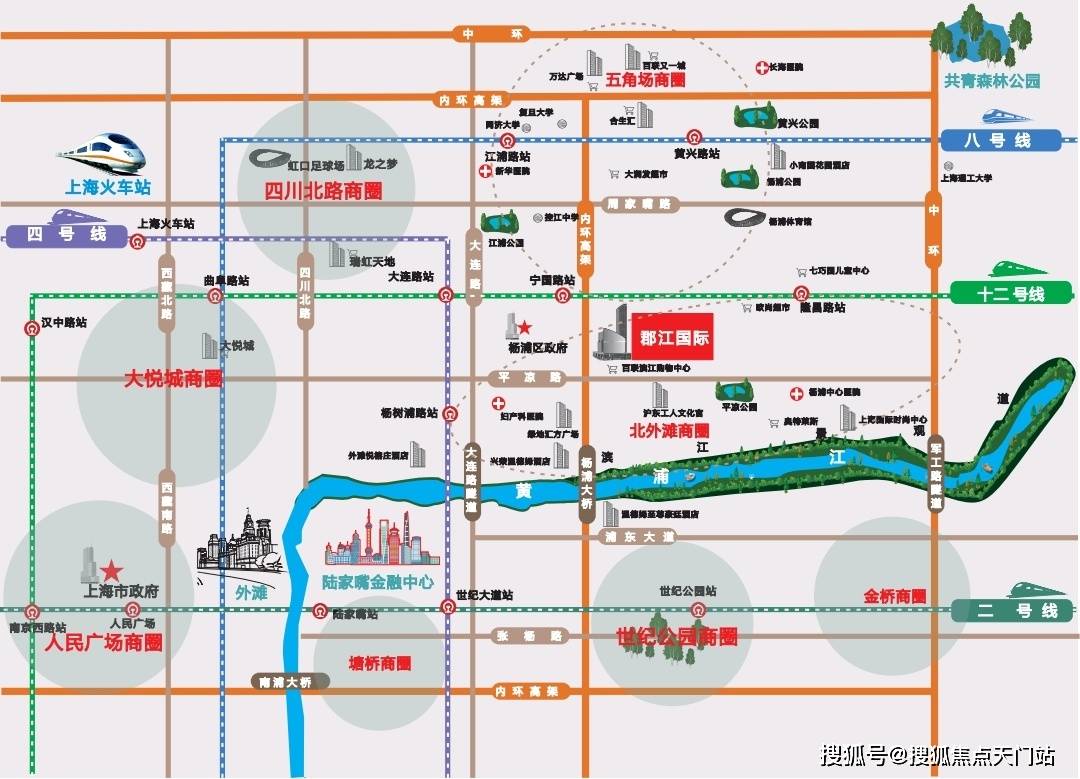 大连路隧道、中环翔殷路隧道。自驾内环高架500米到达,浦东陆家嘴CBD-6.8公里。距上海浦东国际机场虹桥机场39公里。(百度地图)