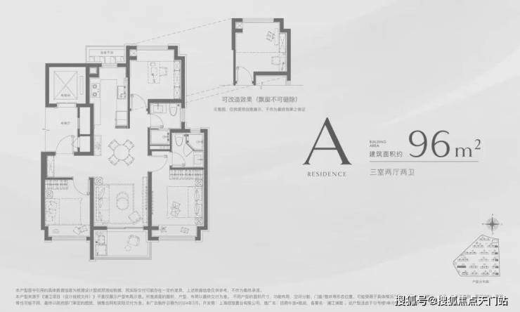 建面约96㎡3房2卫: