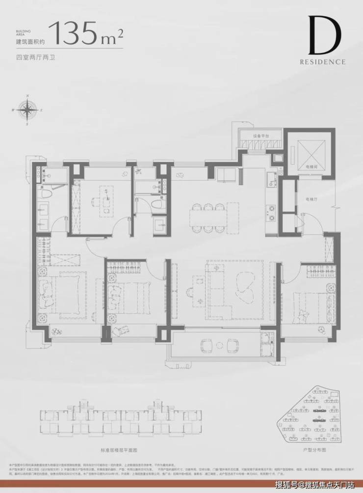 建面约135㎡4房2卫: