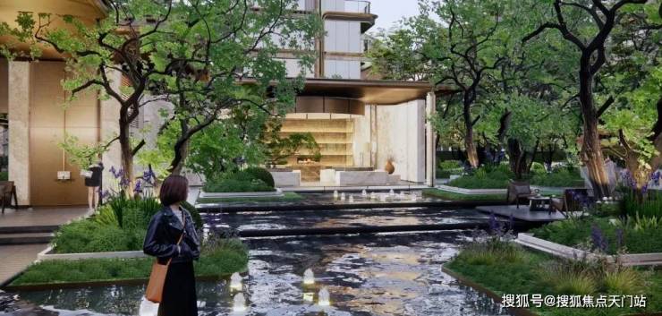 穿过摩登水院,潺潺水声过滤掉城市的喧嚣,你的心情从职场的紧绷,慢慢切换到居家的松弛;
