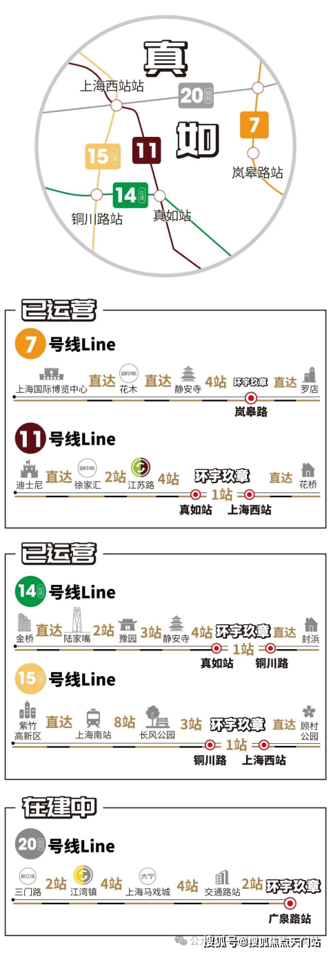 在上海浦西,真如以“7、11、14、15、20 号线(在建)” 五轨+上海西站的稀缺配置,奠定了上海罕见的枢纽地位,既无缝衔接上海核心商圈,更深度嵌入沪宁产业创新带的战略版图,是上海西向发展与长三角协同红利的关键节点。